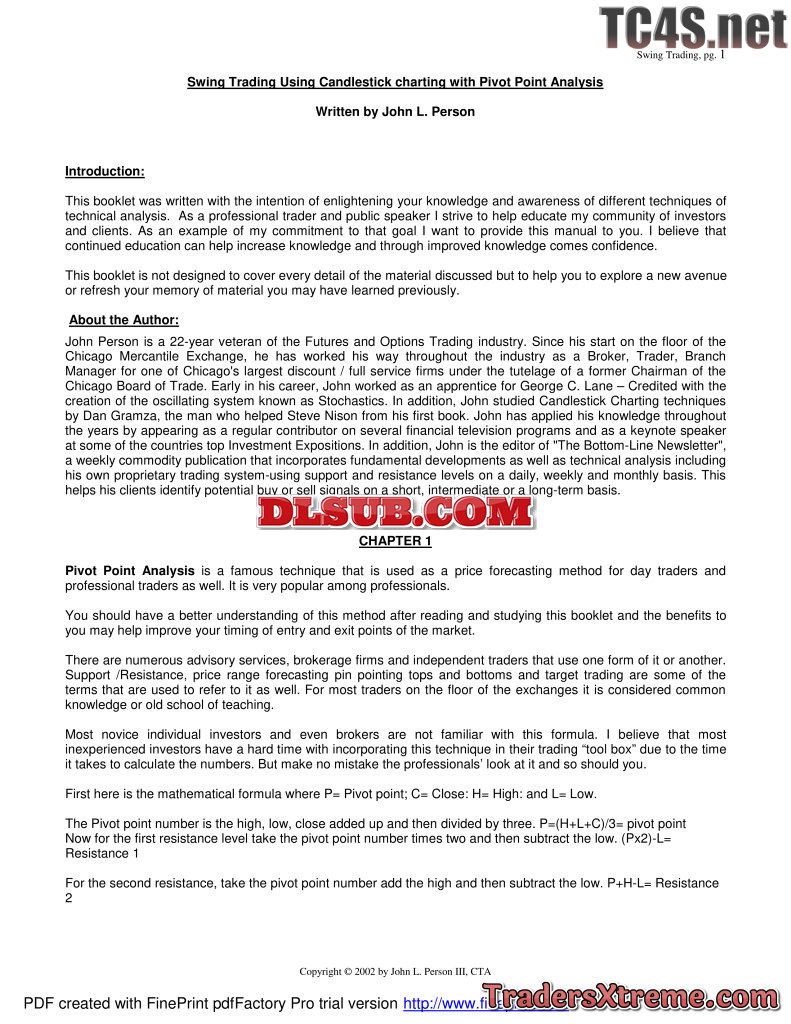 Swing Trading Using Candlestick Charting With Pivot Point By John Pearson - JPG Image File